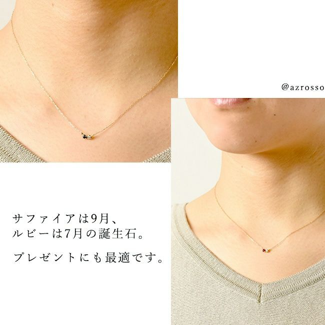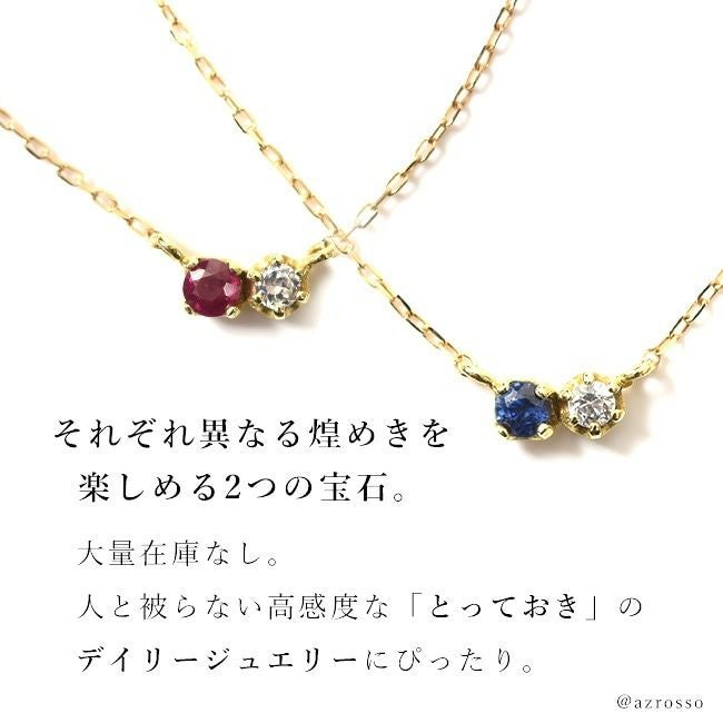 二粒 ネックレス ルビー サファイア ダイヤモンド k10 ゴールド コタラッテピーポー 日本製 7月 9月 誕生石 プレゼント