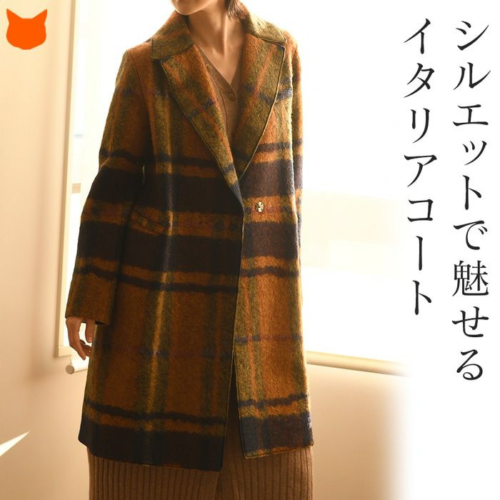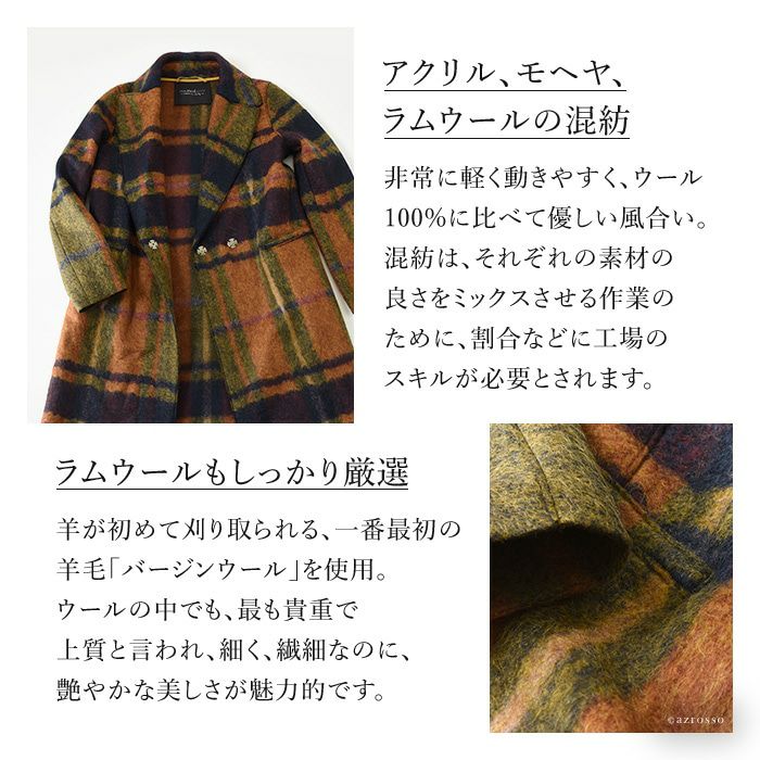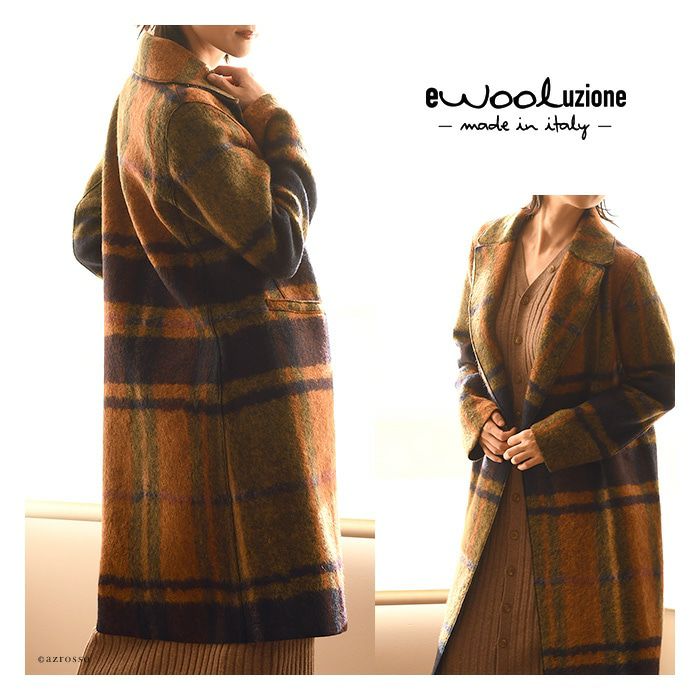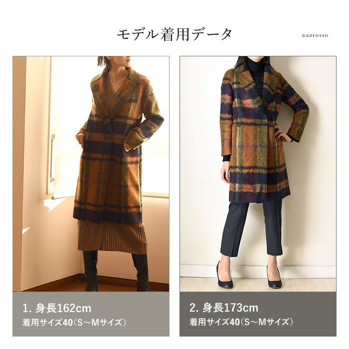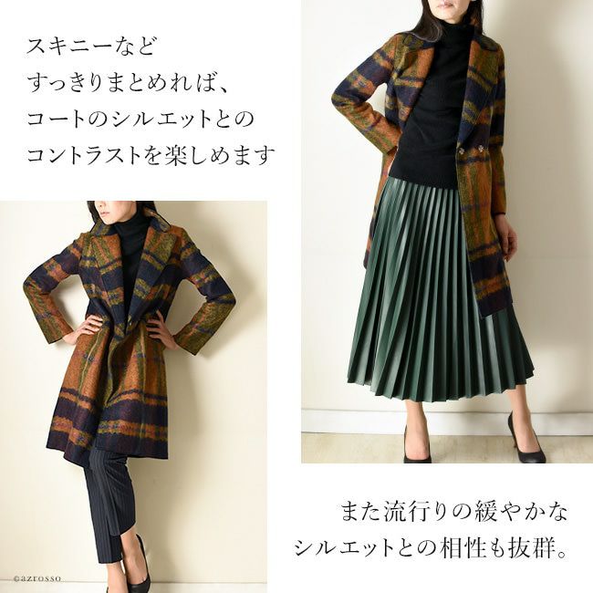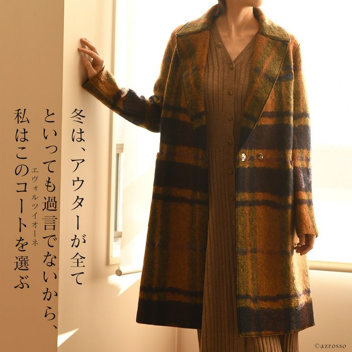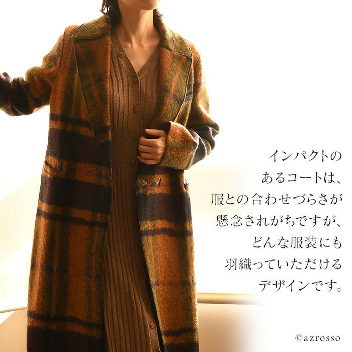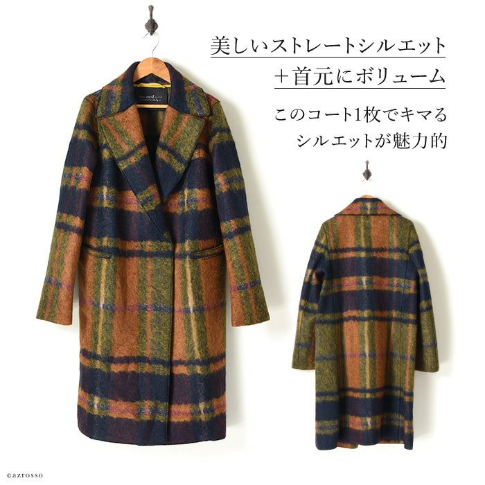 ストレート コート オーバーサイズ ロングコート ウール シャギーコート レディース アウター ブランド チェック柄 ブラウン オレンジ