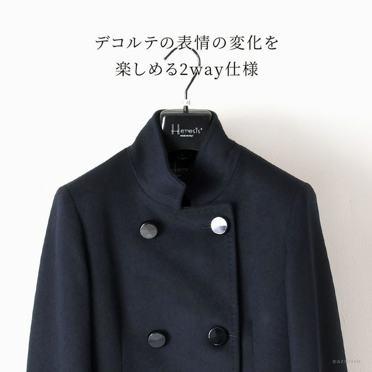 ウールコート ロング コート ダブルボタン ネイビー ブルー ブラック レディース アウター ブランド Heresis エレシス