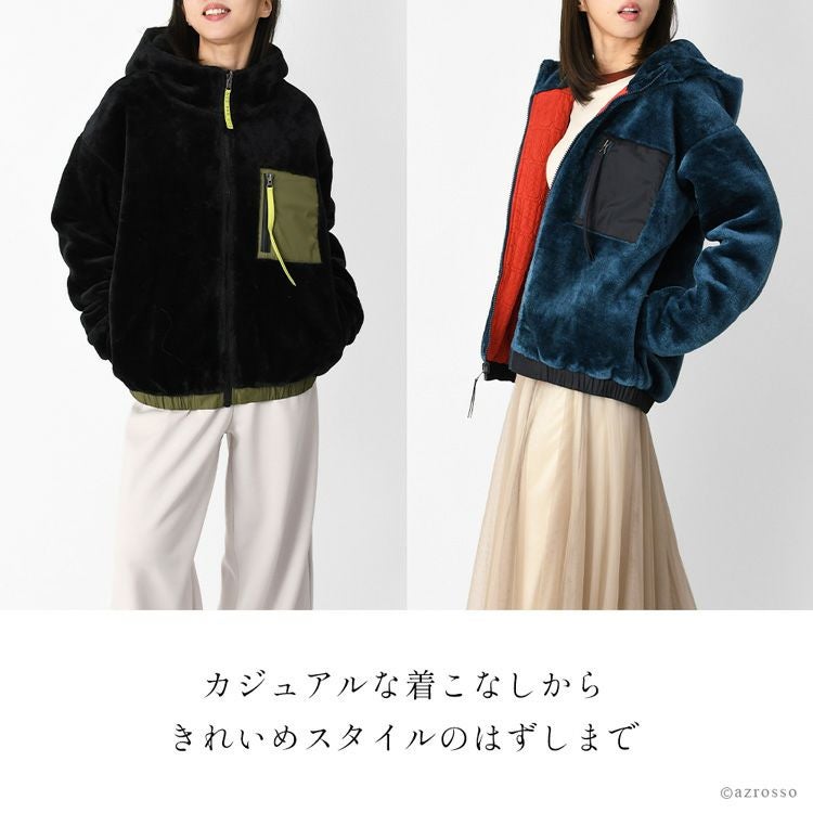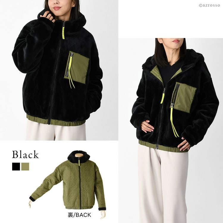 フリース ジャケット レディース アウター ジップアップ パーカー ボア ブルゾン フーディ リバーシブル 軽量 ファーブルゾン 軽い KAIRO Faux Fur Jacket カイロ フォー ファー ジャケット 1119483