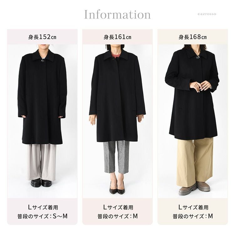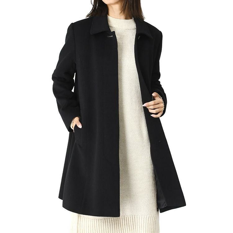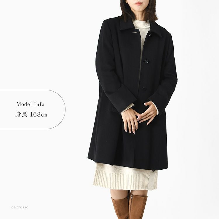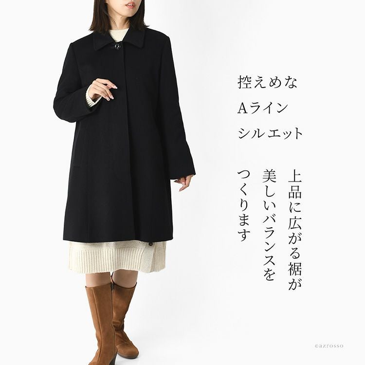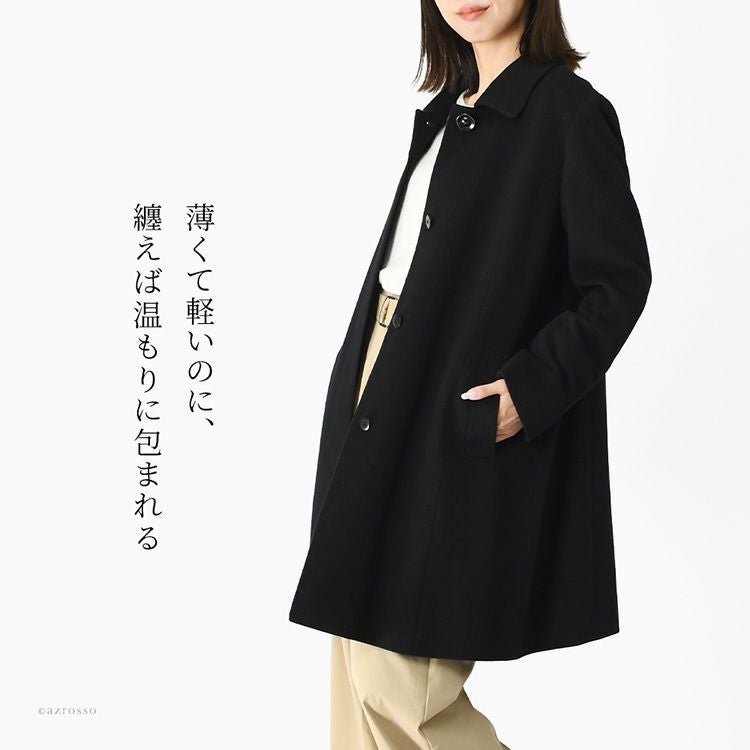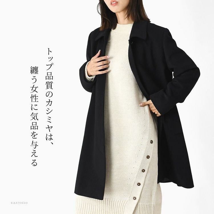 日本製 カシミヤ100%コート レディース ステンカラー ×Aラインシルエットコート ミドル丈 軽い 暖かい 冬 フォーマル ブランド ビアセリカ