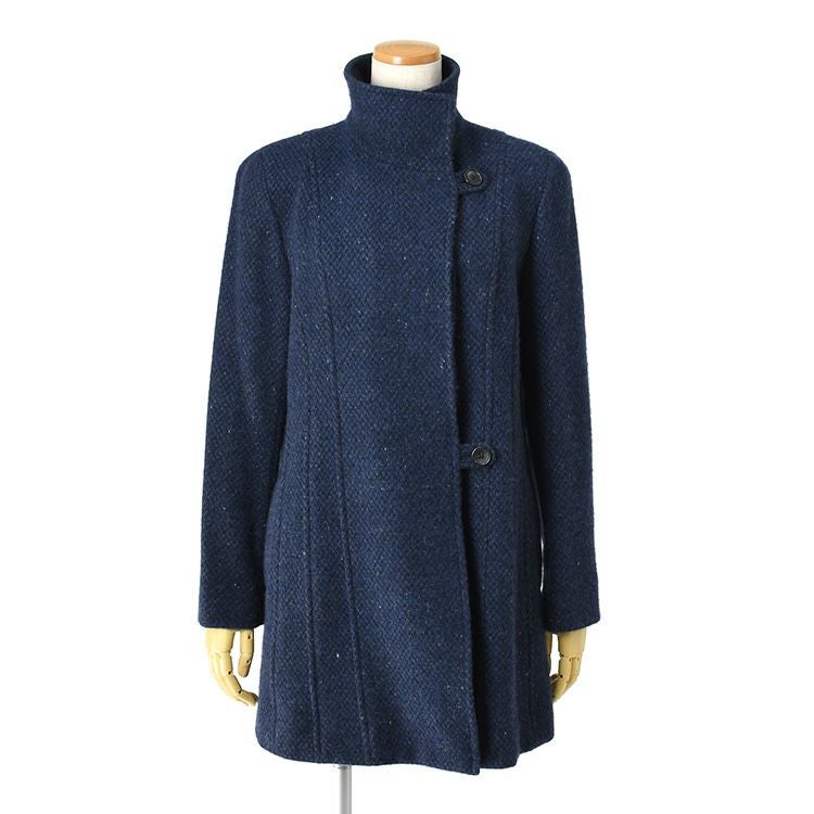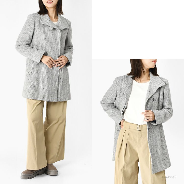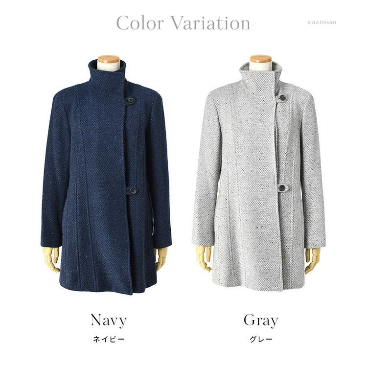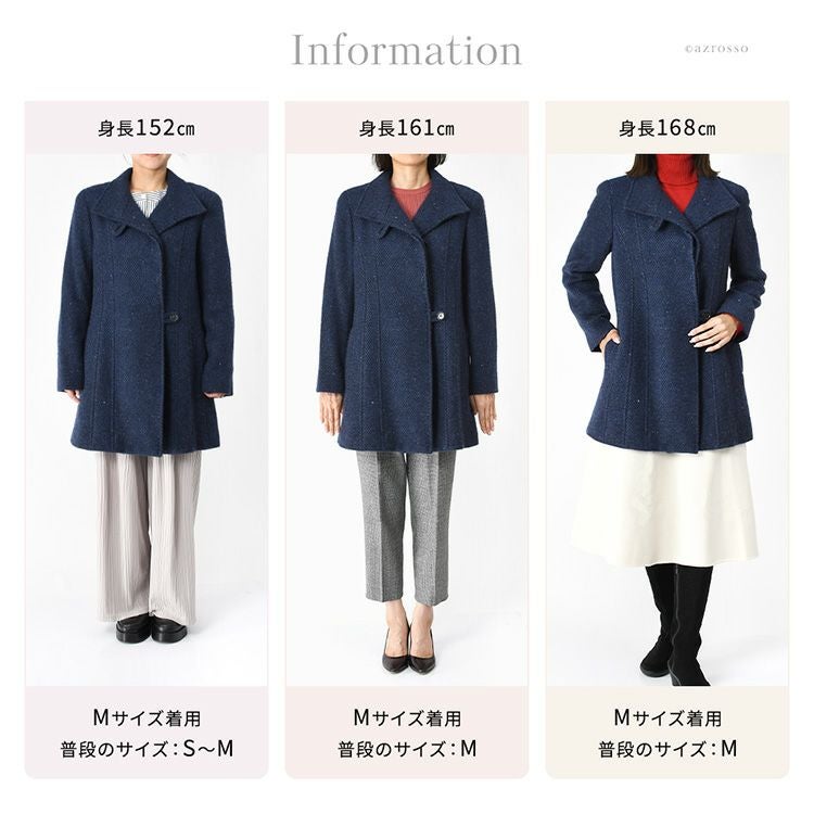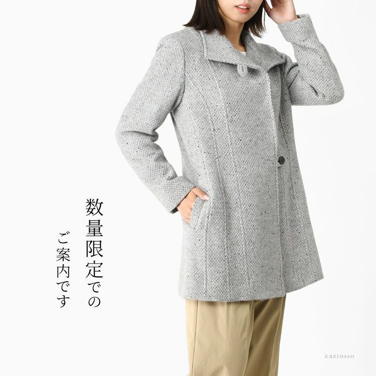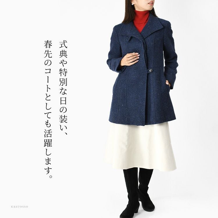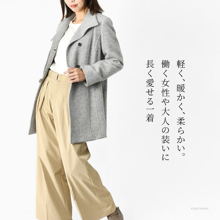 日本製 カシミヤ100%コート レディース ステンカラーコート ツイード調 ミドル丈 軽い 暖かい 冬 フォーマル ブランド スタンドカラー