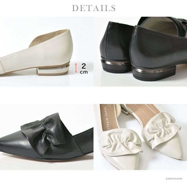 しなやかなゴートレザー(ヤギ革)で仕上げた足に柔らかく馴染む履き心地、フラットでも足を美しく魅せるポインテッドトゥ。
