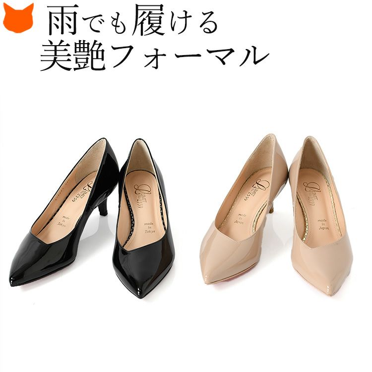 ヒール5cm 防水仕様で天気を気にせず履けるレザーパンプス