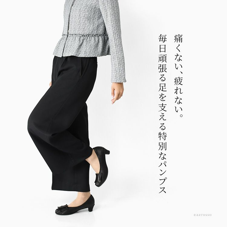 長時間履いても疲れないゆったり幅広3E設計!安定感&フィット感抜群の快適パンプス