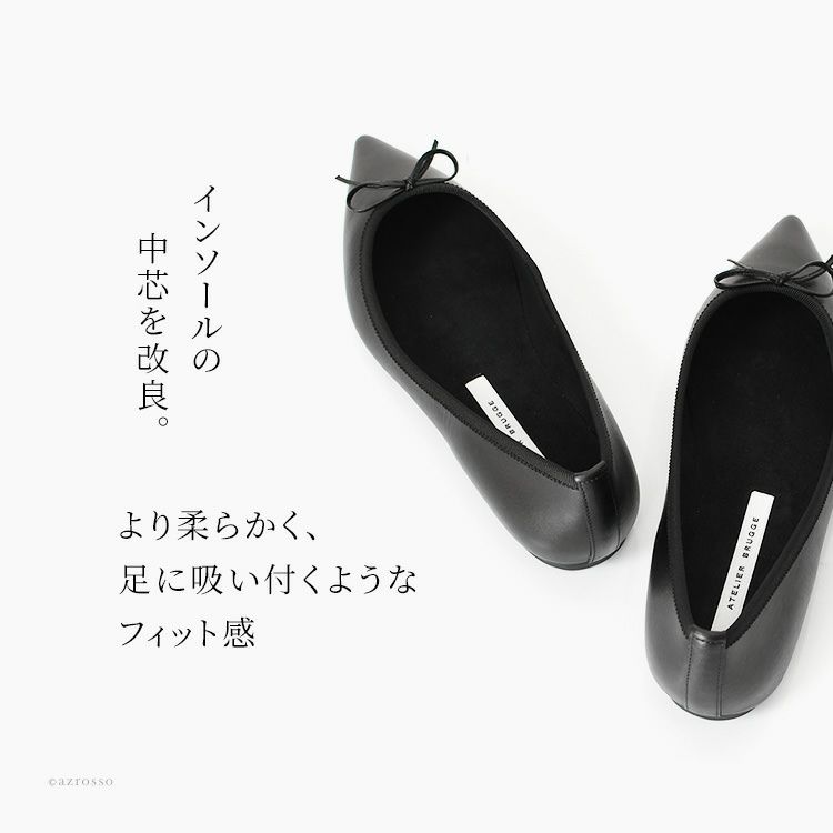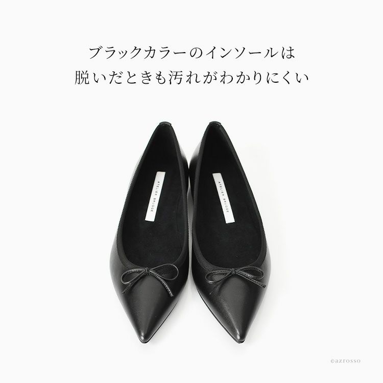 バレエ シューズ フラット パンプス 黒 日本製 レザー レディース ブラック ぺたんこ 靴 ポインテッドトゥ 普段使い 通勤 オフィス 柔らかい 歩きやすい アトリエブルージュ