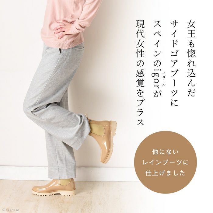 23cm-25.5cm│サイドゴア レインブーツ チェルシーブーツ ショート丈 ベージュ スペイン製 ブランド igor イゴール