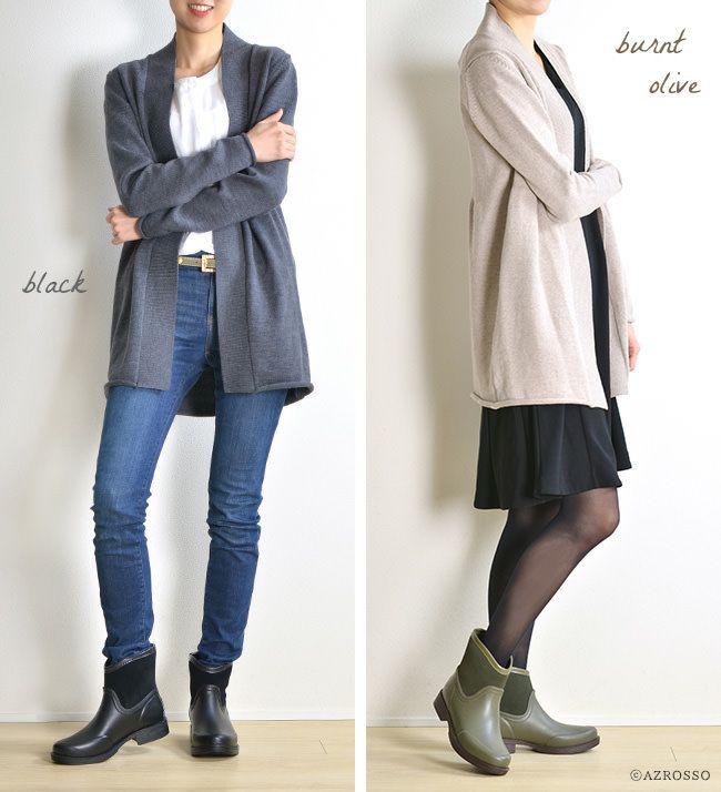 艶やかなラバーに撥水加工を施したスエードレザーを合わせ、秋冬らしい暖かい印象に。2つの素材のコントラストが、他のレインブーツにはない存在感を放ちます。