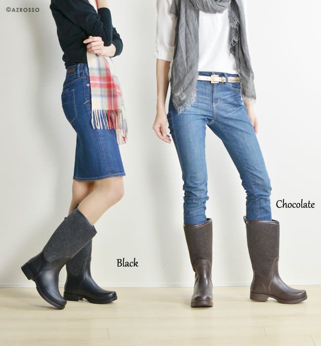 シンプルでラインの美しいサイドゴアレインブーツ。ゴア部分をリブ編みのニットにすることで、とってもかわいらしいレインブーツになりました。