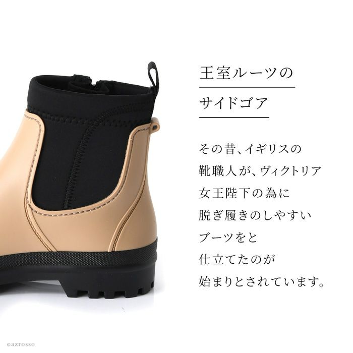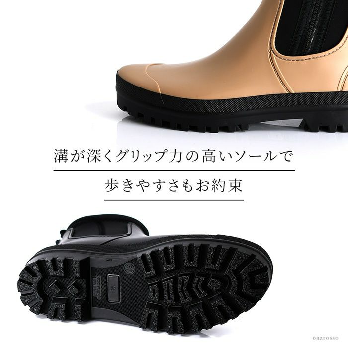シンプルで人気のサイドゴアレインブーツに、脱ぎ履きしやすいサイドファスナーをセット。足首周りがキュッと絞られているので、ファスナー付きでも足がすっきり見える、ショートブーツのようなデザイン。伸縮性も抜群なので、とにかく脱ぎ履きに時間をかけたくない!という方におすすめのおしゃれで快適なレディースレインブーツです。