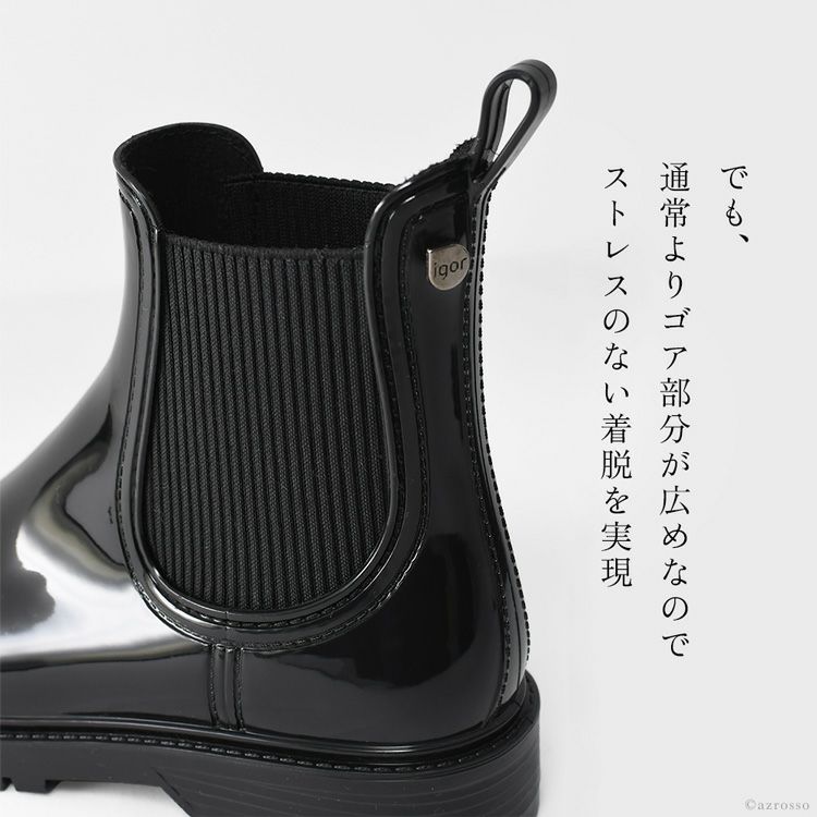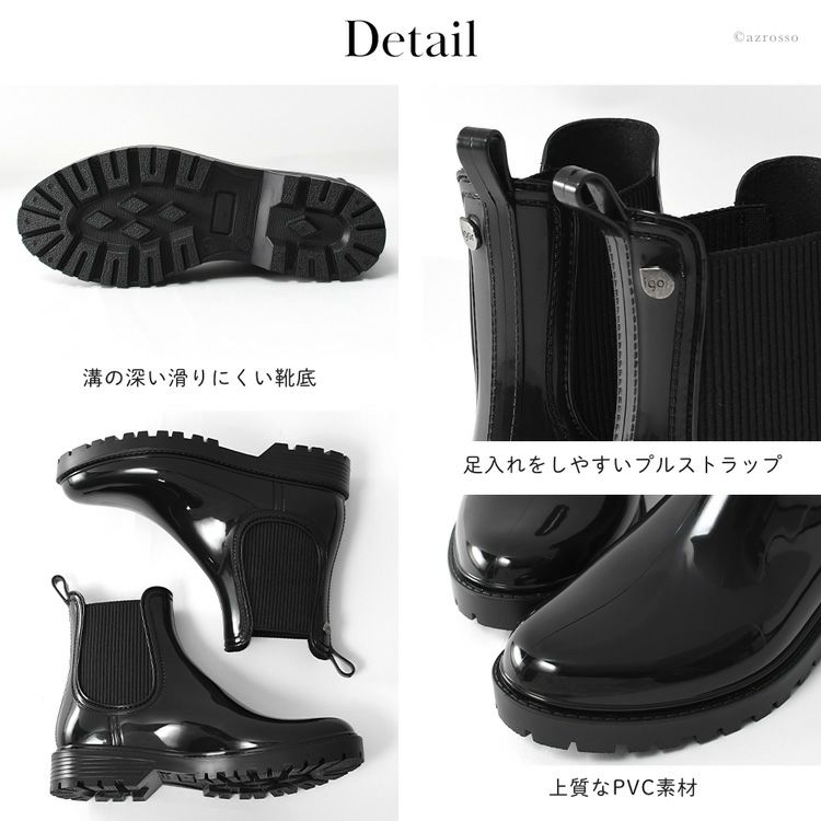 スペイン製 サイドゴア レインブーツ レディース ショート丈 長靴 おしゃれ 滑らない 雨靴 黒 シンプル 履きやすい 歩きやすい ブランド igor