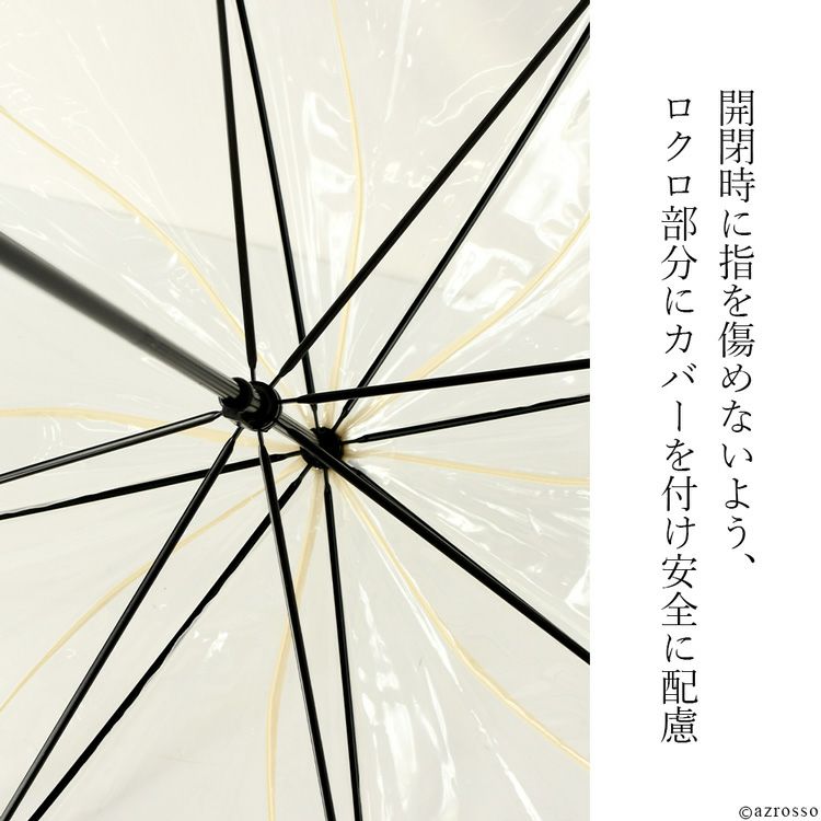 おしゃれなビニール傘 クリアアンブレラ 親骨58cm 雨傘 長傘 透明 カラーパイピング ホワイト ブラウン グレー