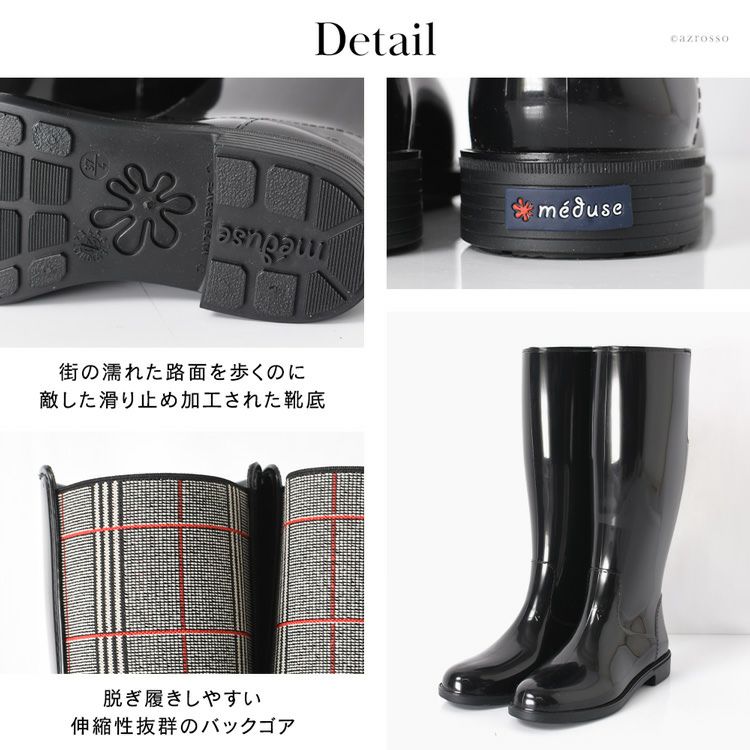 クラシックなチェック柄のバックゴアが可愛いレインブーツ