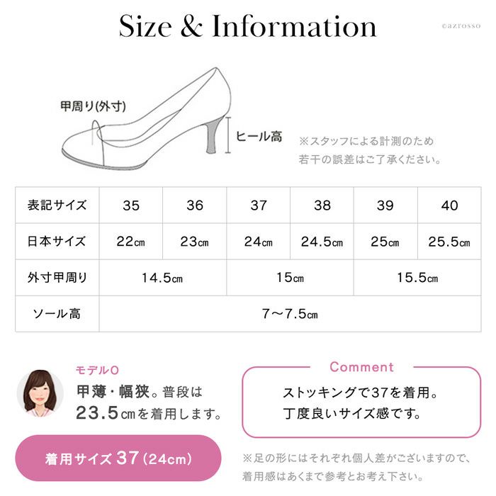 コメント:ストッキングで37を着用。丁度良いサイズ感です。