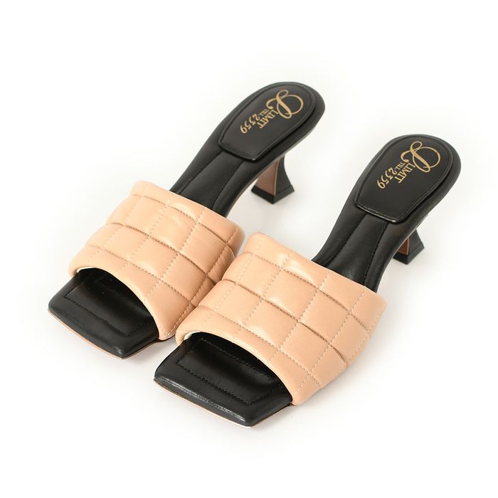 煌めくカーフレザーのビジネスに履ける上質サンダル。足を華奢で美しく見せてくれる上に安定感抜群の太ヒール 【21.5-25cm】ヒール7cm レザー チャンキーヒール ミュール サンダル|リミットティル2359