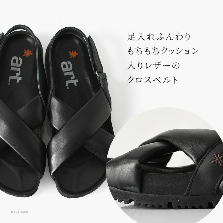 足にしっかりフィットして疲れない。靴のお医者さんがいるコンフォート大国、スペインで生まれた快適きわまりないレザーサンダル。反り返った甲のカタチが、歩きやすさをアシストしてくれるコンフォートサンダル 23cm-25.5cm|クロスベルト コンフォートサンダル 厚底 外反母趾予防 幅広で履きやすい グラスワックスレザー ART アート