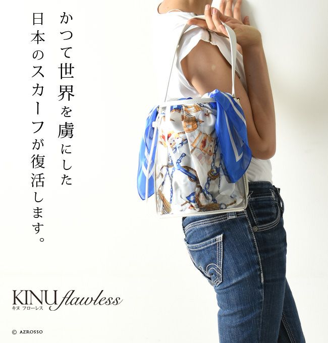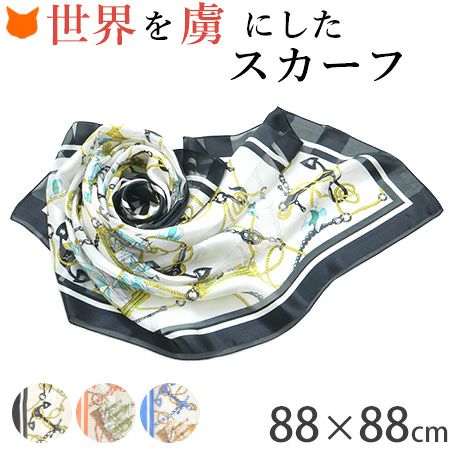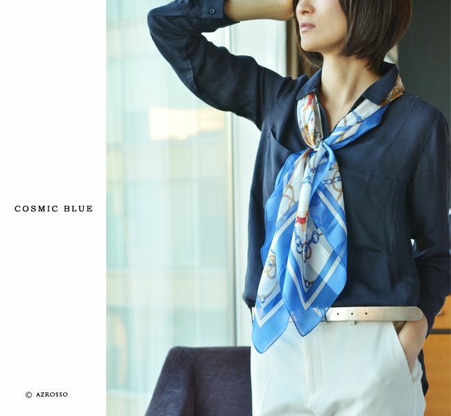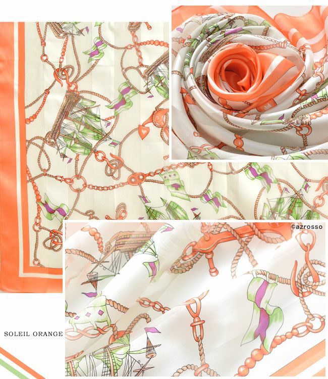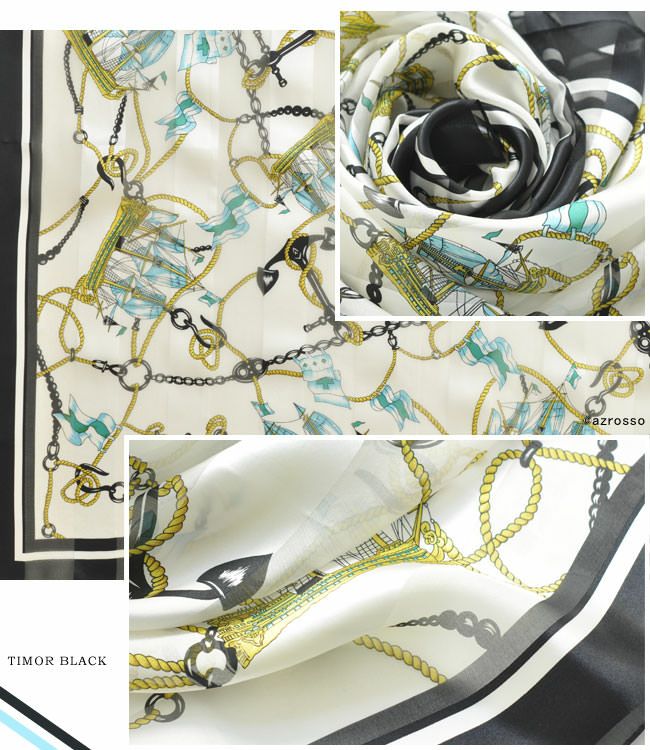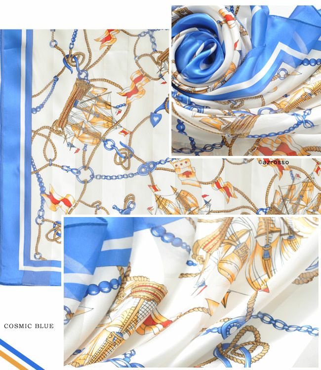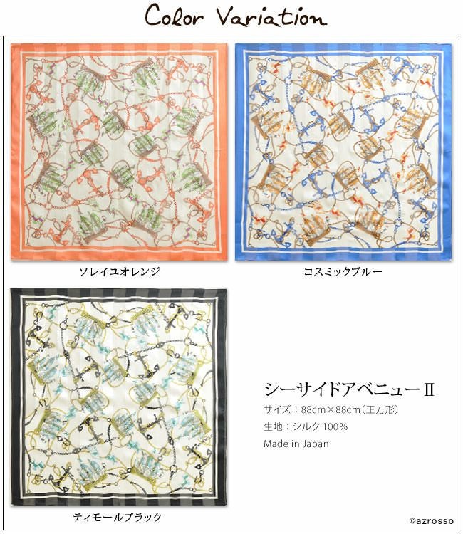 シーサイドアベニューⅡ シルク サテン 大判 スカーフ 88x88 日本製 正方形 ブランド 春夏 マリン柄