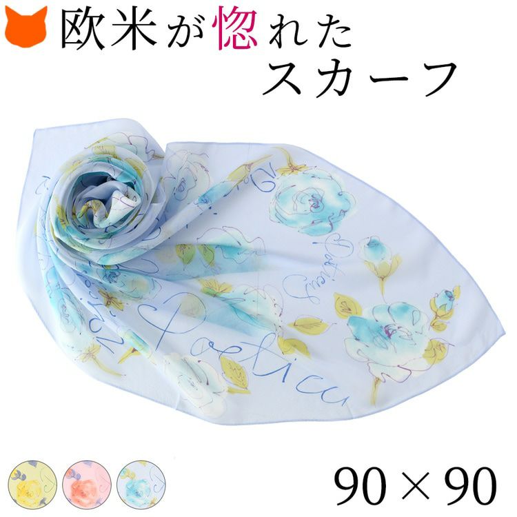 世界三大織物の産地と知られる横浜の上質シルクストール ローザ シルクストール シフォン 日本製 横浜スカーフ 90x90 春夏ストール 冷房よけ、紫外線よけにも