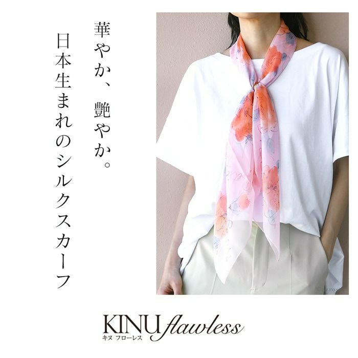 横浜スカーフ キヌフローレス 日本製 シルクシフォン ローザ 世界に誇るメイドインジャパンシルクスカーフ キヌフローレス ブランド紹介 スカーフの柄の説明