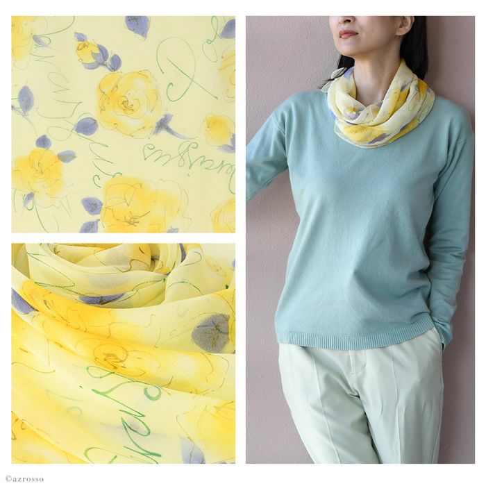 4. ローザ シルクストール シフォン 日本製 横浜スカーフ 90x90 春夏ストール 冷房よけ、紫外線よけにも