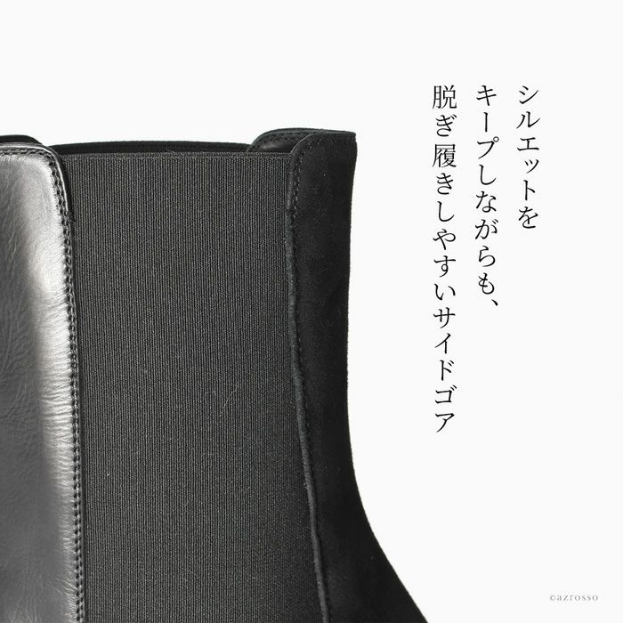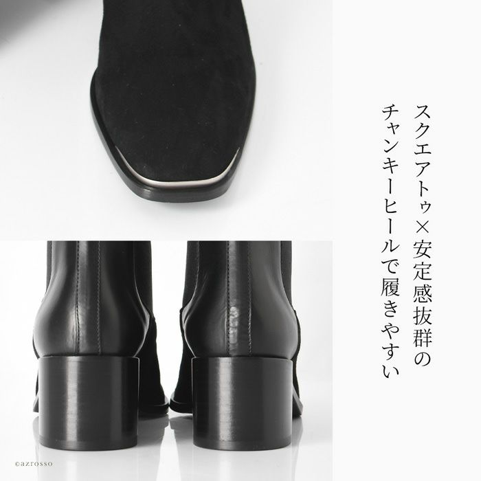 ▼特徴:ショートブーツ|チェルシーブーツ|ミドルブーツ|サイドゴア|伸びる|履きやすい|スエード|ナッパレザー|本革|異素材ミックス|スクエアトゥ|チャンキーヒール|太ヒール|ローヒール|ミドルヒール|歩きやすい