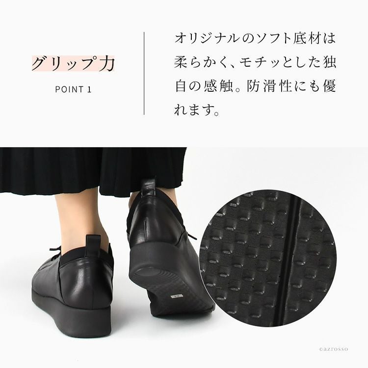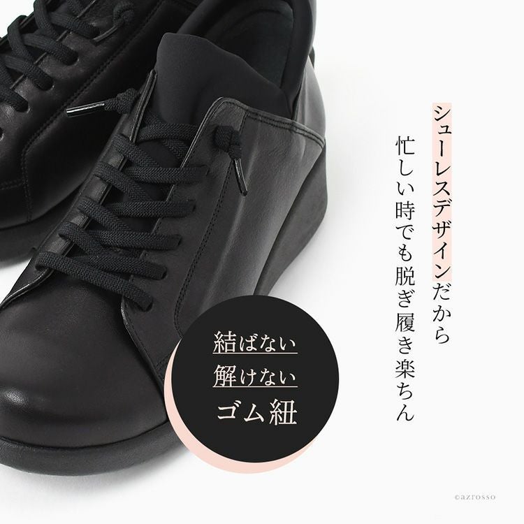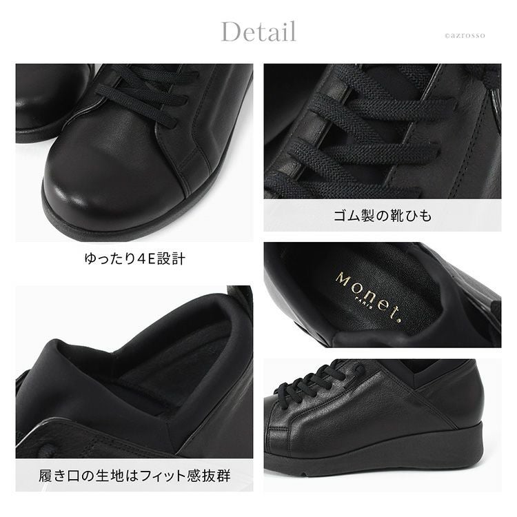 日本製 4E スニーカー レディース 靴 本革 厚底 超軽量スニーカー 歩きやすい靴 シューレススニーカー ゴム 紐結ばないスニーカー モネ スニーカー