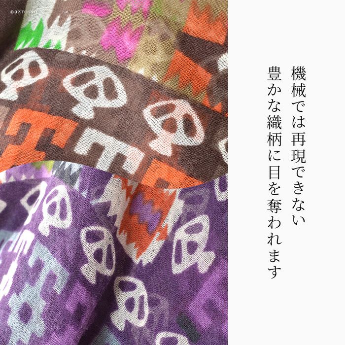 シックな装いのワンポイントとして、首に巻いたり、肩に巻くことで、パッと華やかに、表情も明るく豊かに魅せてくれます。