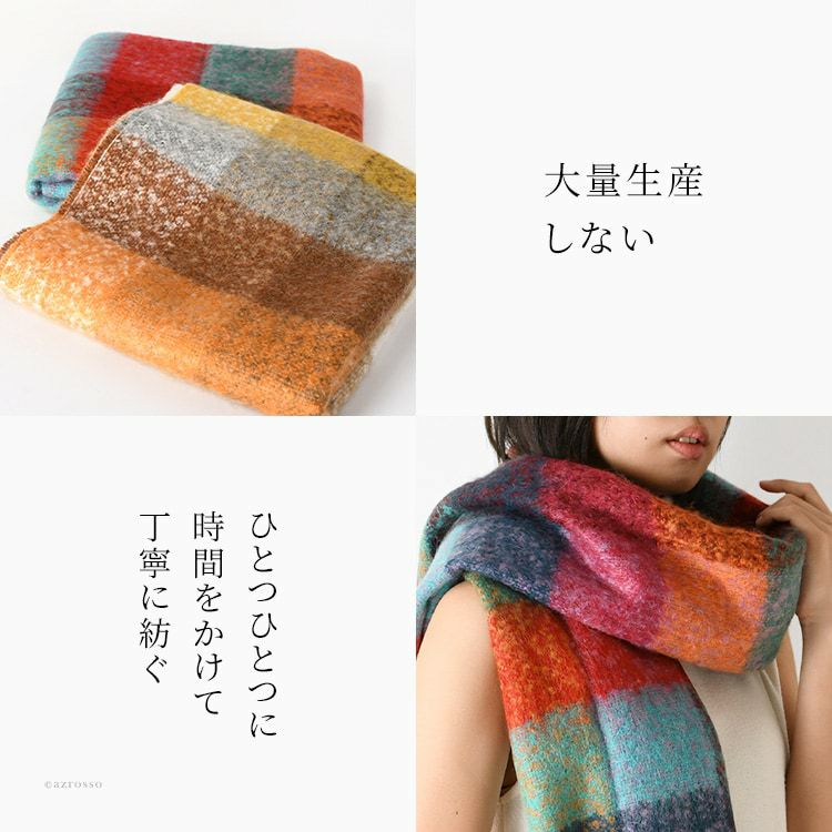 フランスの職人が1枚1枚丁寧に紡ぐ、上質モヘアのふんわりマフラー。チクチクしない付け心地、色落ちや色移りのしにくさでも高く評価されています。