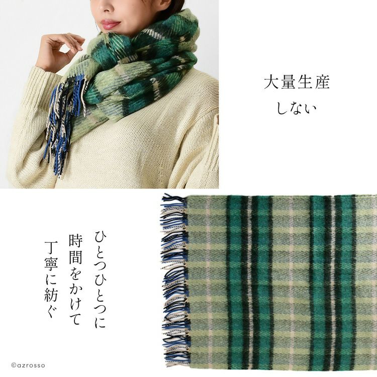 タータンチェック ストール 大判 フランス製 ロングマフラー 緑 フランス ブランド レディース