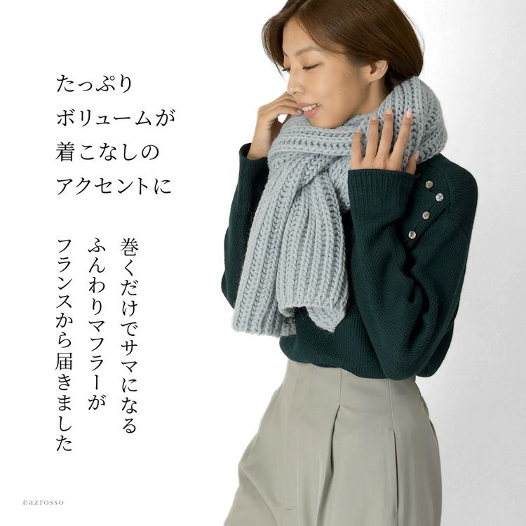 たっぷりとした生地感をキレイ色に染め上げた、巻くだけでサマになるマフラー。アルパカやウールなどの高級あったか素材をアクリルやビスコースとブレンドし、