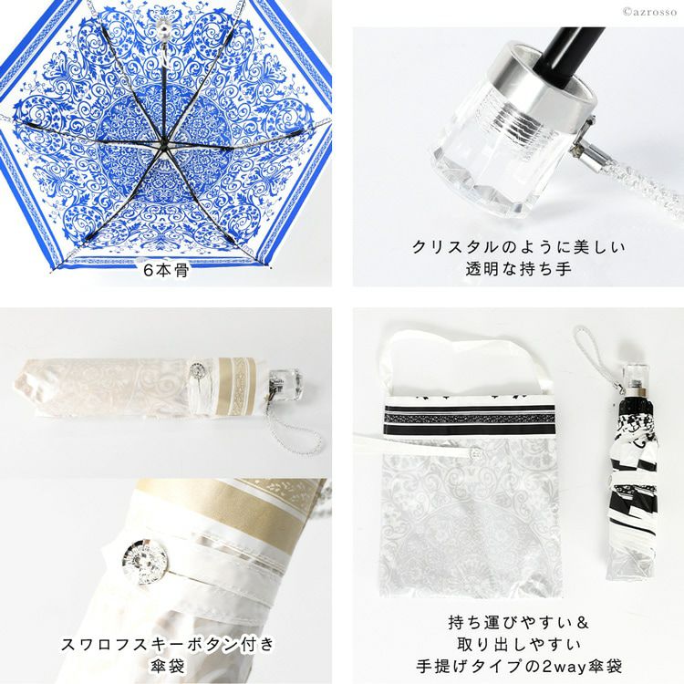 白 日傘 ダマスク柄 折りたたみ傘 晴雨兼用 傘 軽い 軽量 紫外線 UV カット 遮熱 涼しい 黒 ゴールド 黄色 青 ピンク 日本製 レディース プレミアムホワイト
