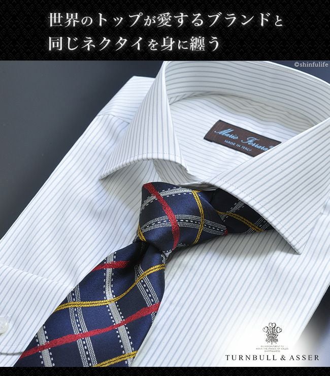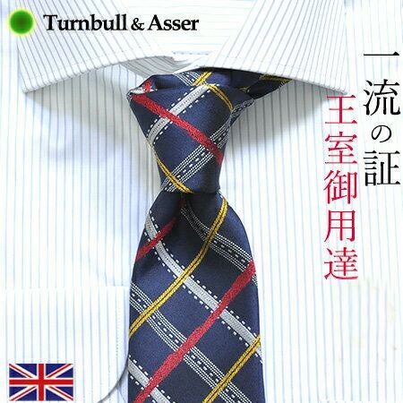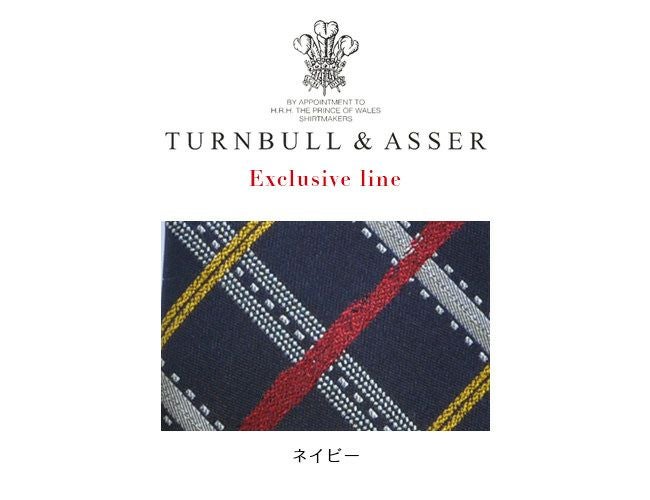 ターンブル アッサー Turnbull&Asser ネクタイ スクエア チェック イギリス製 シルク 100% 幅 8cmターンブル&アッサー ブランド ビジネス 結婚式 おしゃれ ネイビー 紺 ジェームズ ボンド James Bond 通販