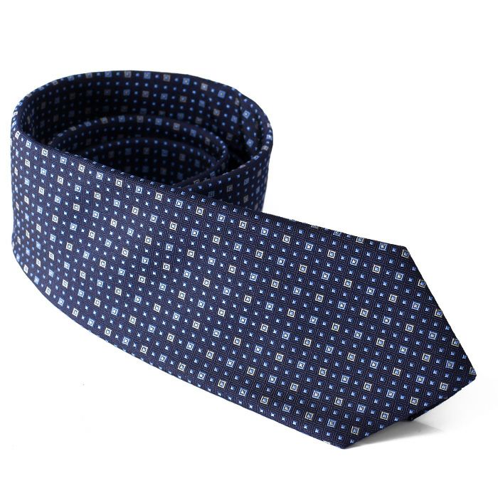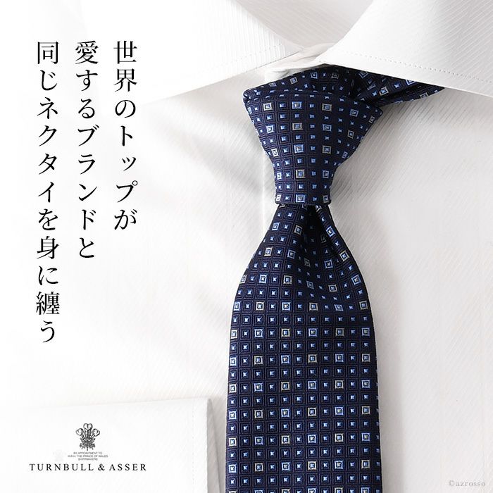 ネクタイ シルク 100% ミニ スクエア 柄 イギリス製 ビジネス ブルー 青 ネイビー 紺 ブランド ターンブル アッサー Turnbull&Asser