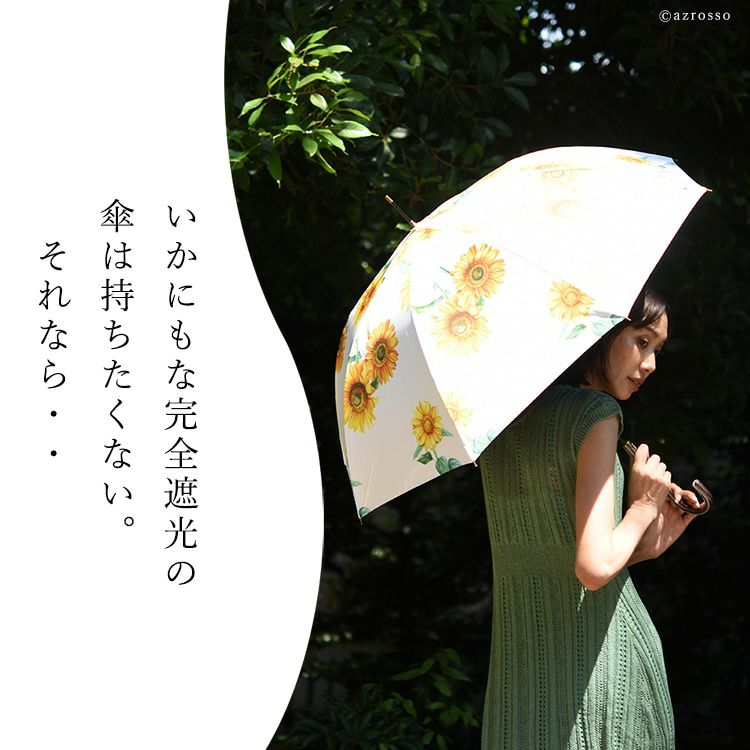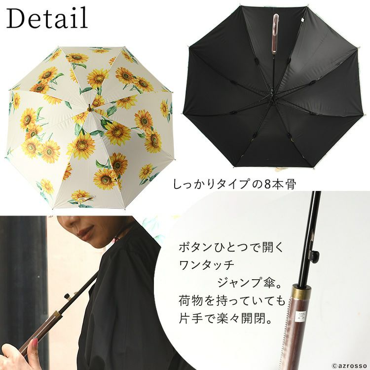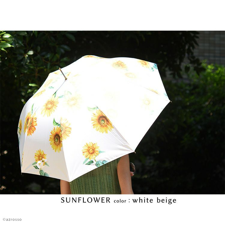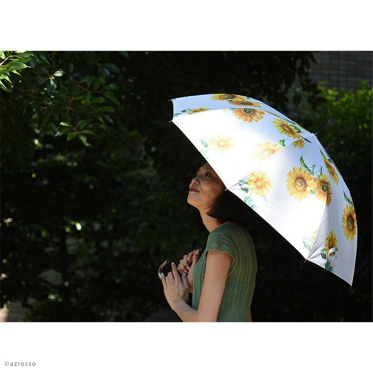 夏の日差しに映えるひまわりが美しい長傘タイプの晴雨兼用傘。