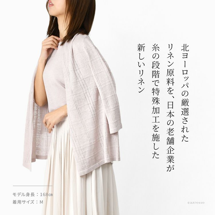 麻100%でもごわつかない、快適リネンカーディガン。安価なリネンとは違う上品な艶としなやかさで、ごわつかない