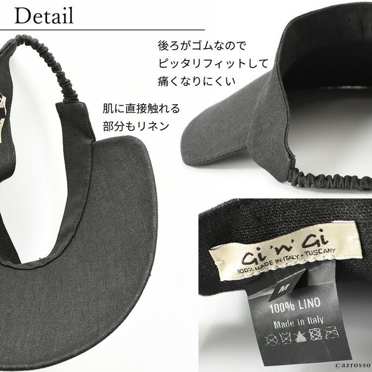 イタリア帽子ブランド GINGI(ジンジ)のおしゃれで上品シンプルなサンバイザー。リネン100%で通気性もつけ心地も快適