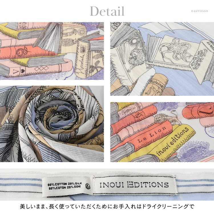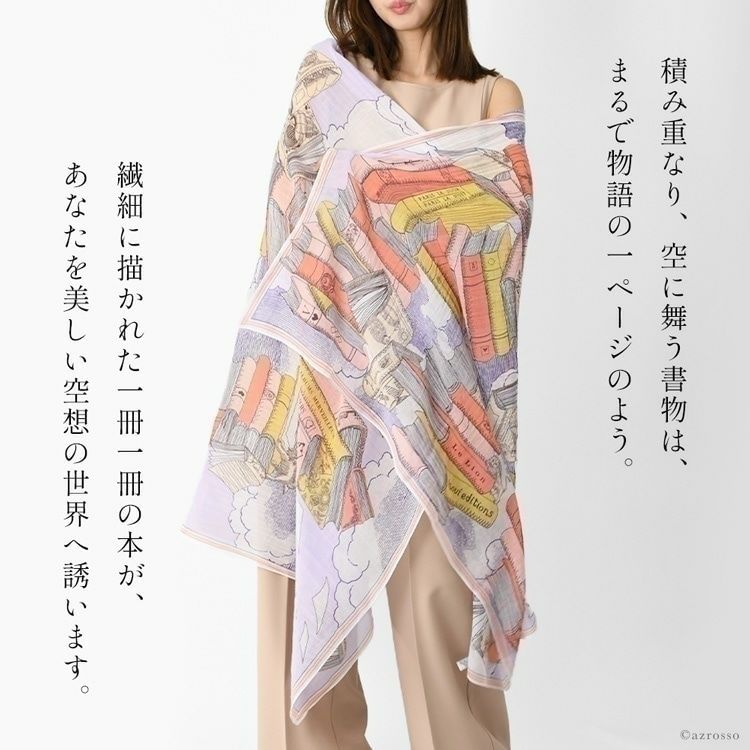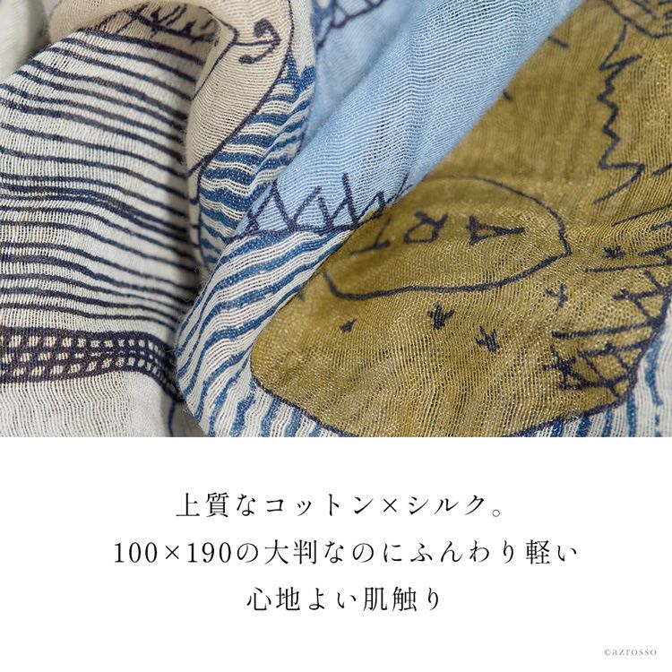 コットン シルク ストール 大判 薄手 レディース おしゃれ 本 柄 長方形 100×190 冷房対策 持ち運び フランス ブランド 母の日 プレゼント ギフト