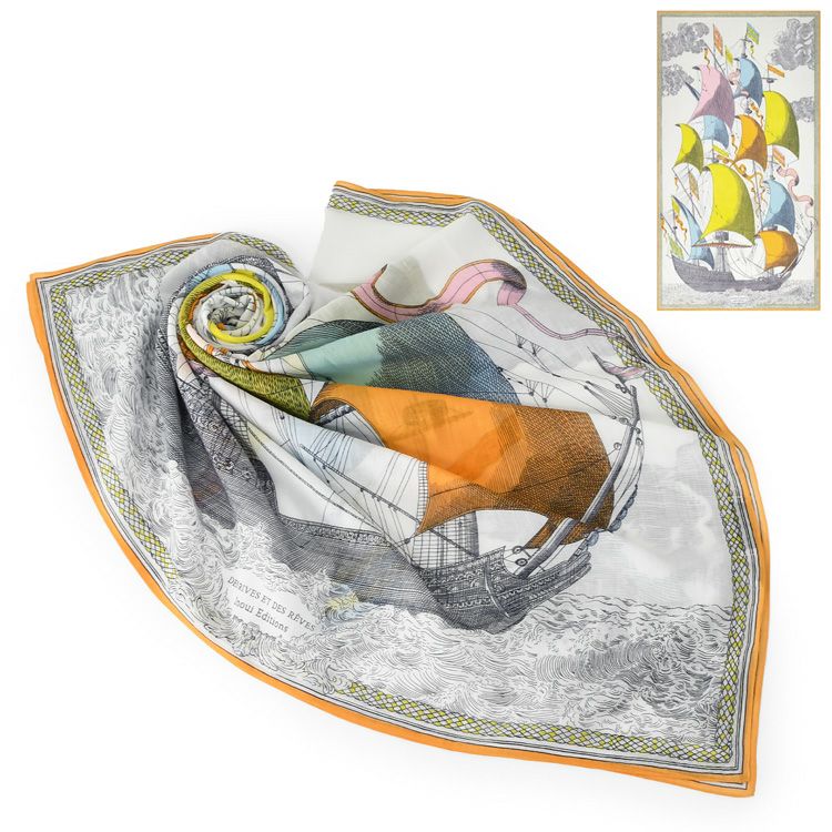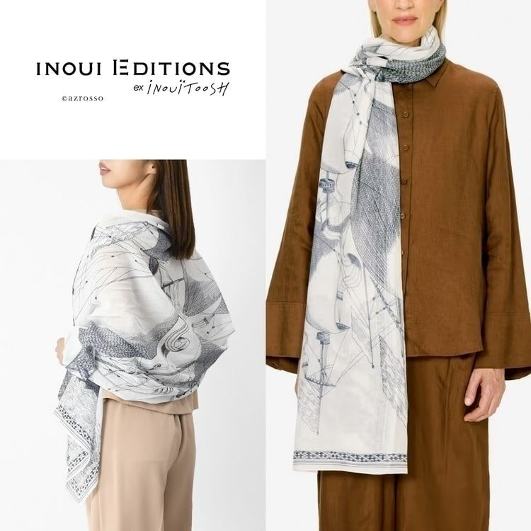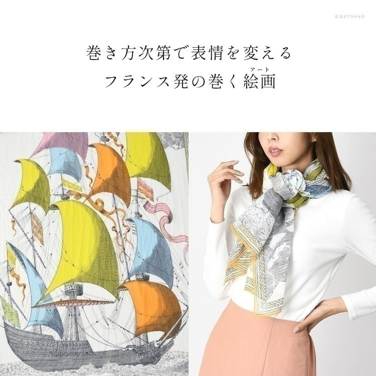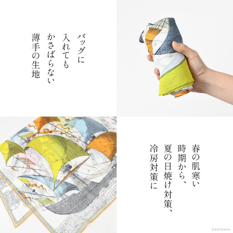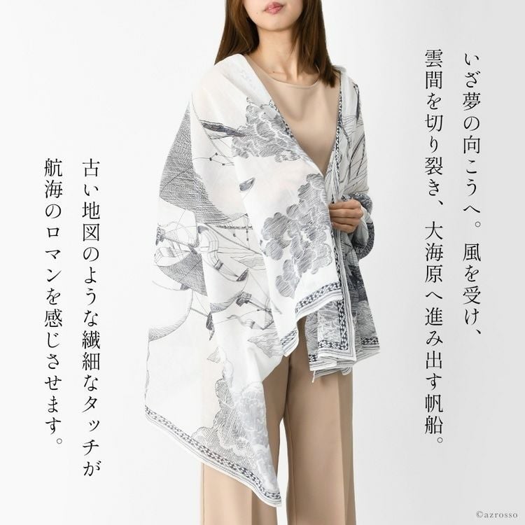 コットン ストール 大判 薄手 レディース おしゃれ 帆船 柄 長方形 100×180 綿100 冷房対策 持ち運び フランス ブランド 母の日 プレゼント ギフト