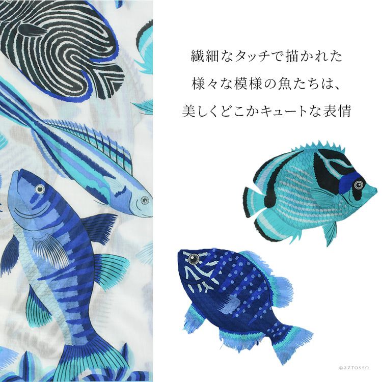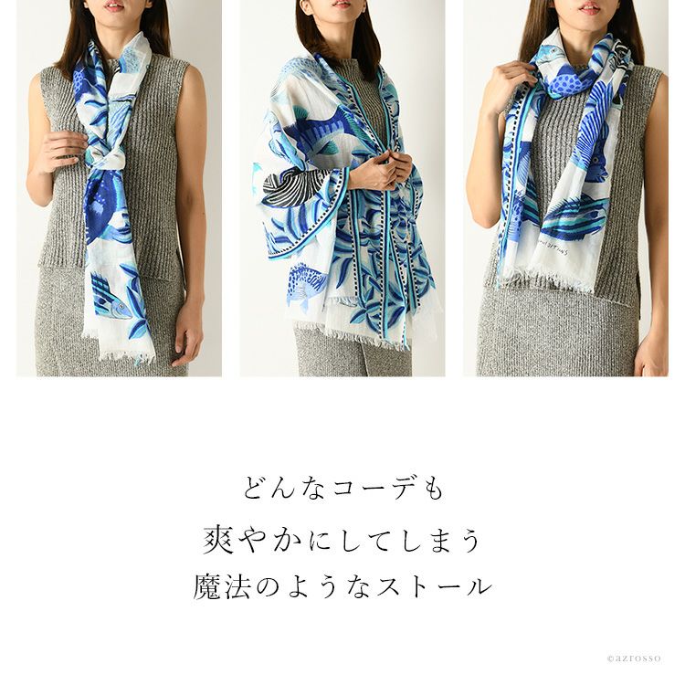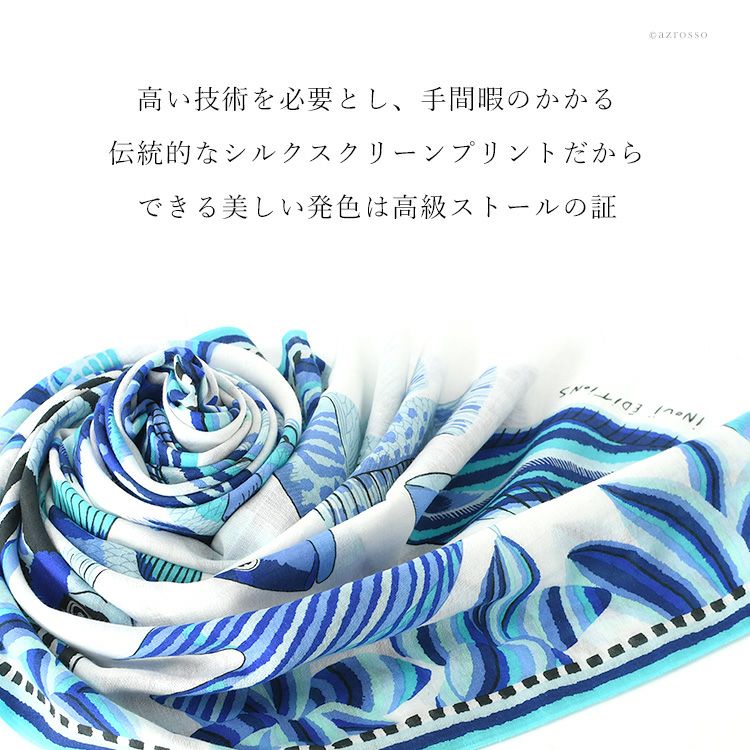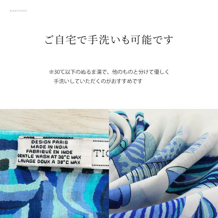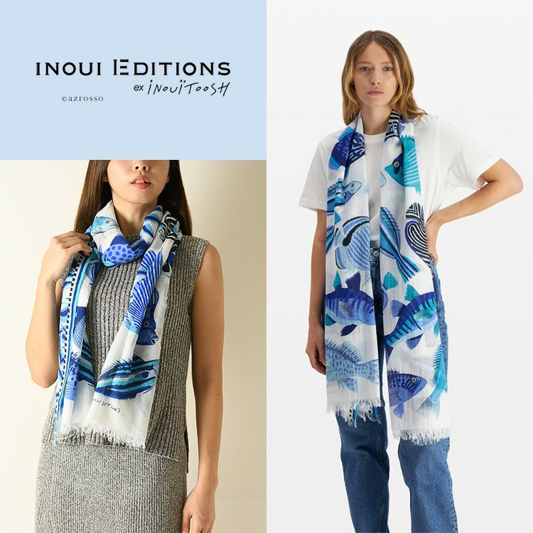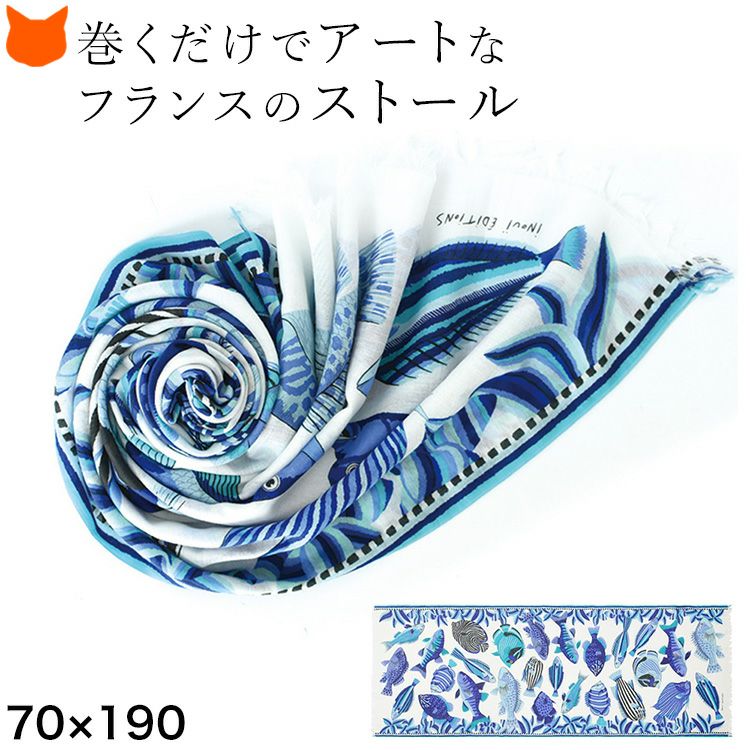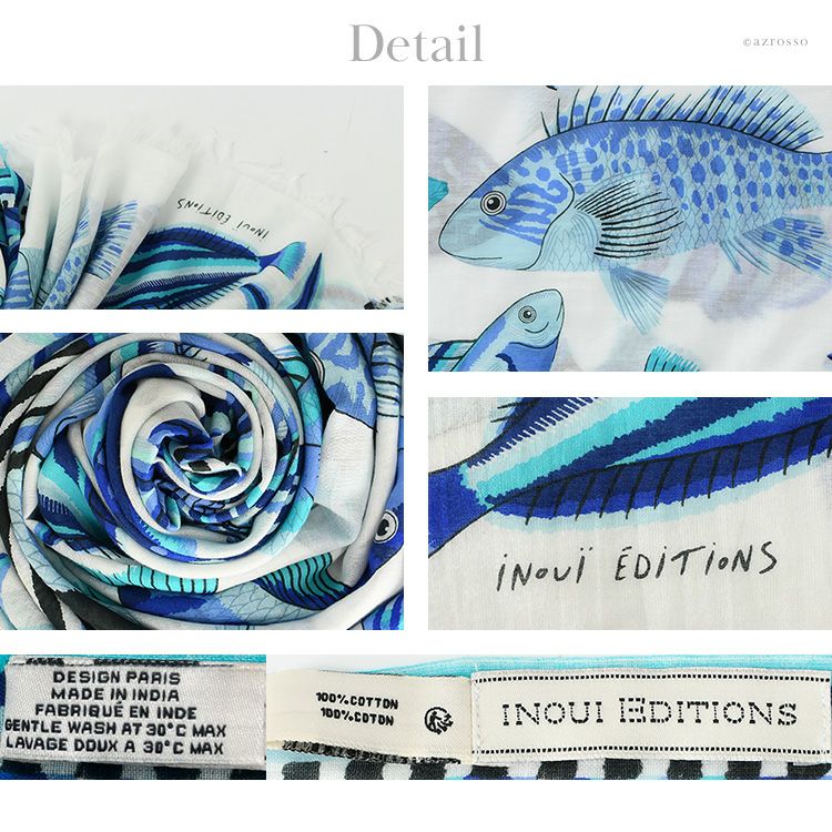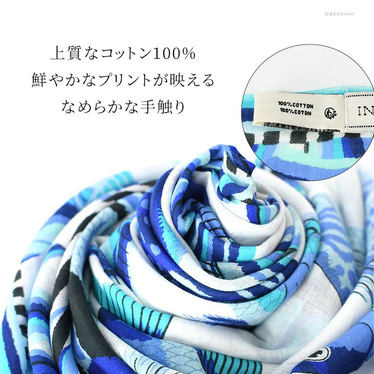 イヌイエディションズ コットン100% マリン柄 夏ストール INOUI EDITIONS 薄手 洗える 大判 フランスブランド ブルー 青 イヌイトゥーシュ 冷房除け 日よけ