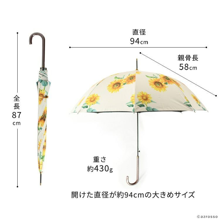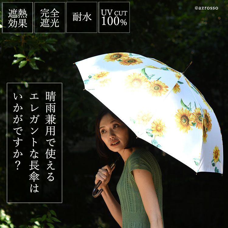 花柄がおしゃれな晴雨兼用傘。すっきりフォルムの長傘、大きいサイズなのに軽量、ワンタッチのジャンプ傘。簡単開閉&完全遮光 日傘 完全遮光 晴雨兼用 傘 軽量 8本骨 長傘 遮光率100% uvカット 花柄 一級 遮光 遮熱 レディース ブランド 雨傘 おしゃれ ひまわり 黄色 白 簡単開閉 誕生日 プレゼント ギフト 20代 30代 40代 50代 60代