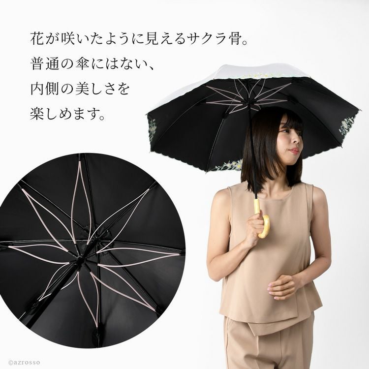 5. 刺繍入り日傘 レディース 長傘 桜骨 晴雨兼用 UVカット100% 遮光100% 完全遮光 涼しい 軽量 内側黒 ブラックコーティング