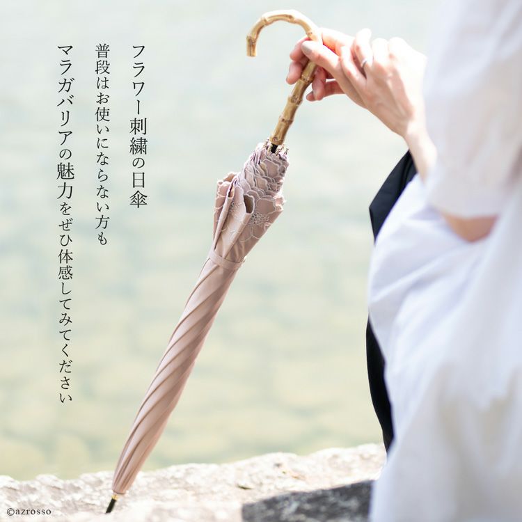 晴雨兼用のシンプルな日傘も、フリルたっぷりの可愛らしい日傘も、何か違う・・・もう少し大人びたデザインが欲しい、と首をかしげている女性に是非、手に取っていただきたいマラガバリアの日傘です。