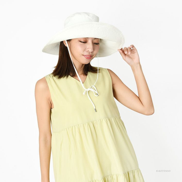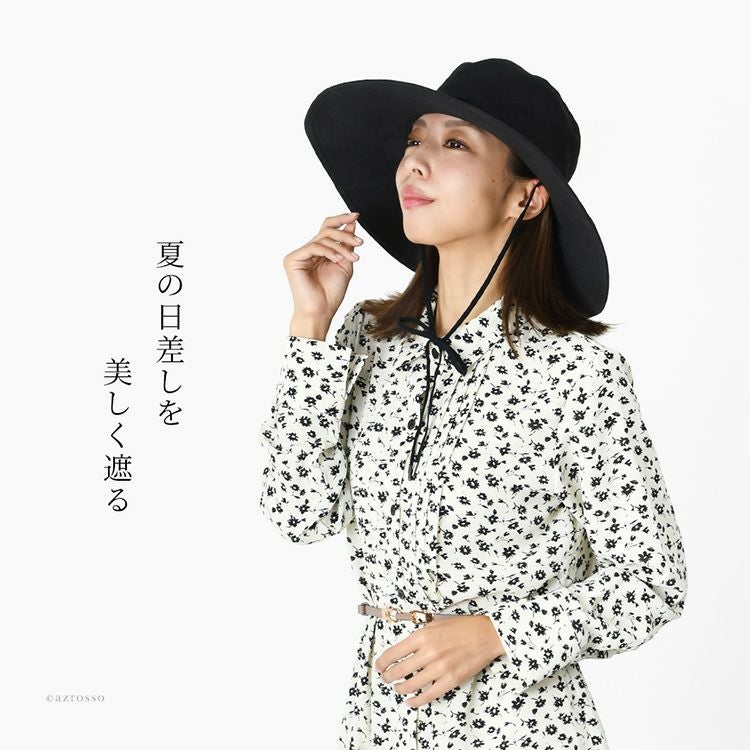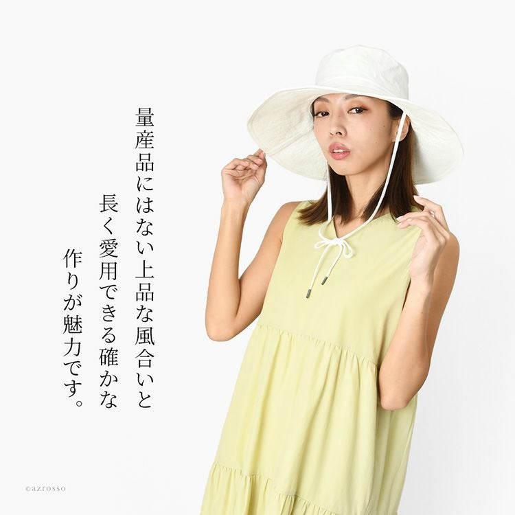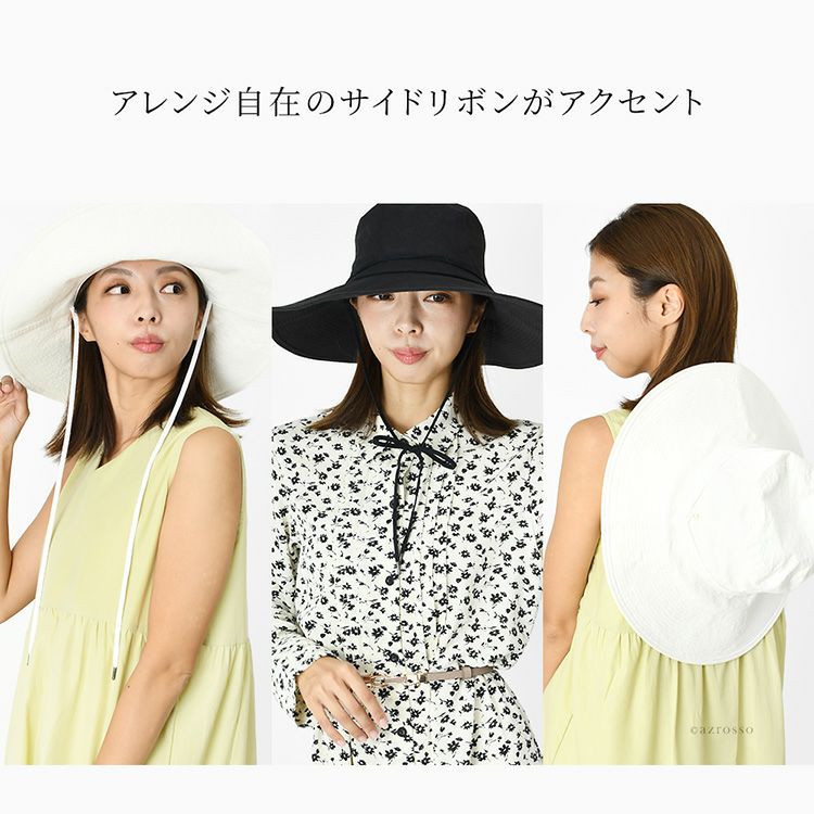 日本製 レディース ハット つば広 夏帽子 コットン UVカット 日焼け防止 つば広帽子 紫外線カット おしゃれ ブランド サイドリボン 折りたたみ