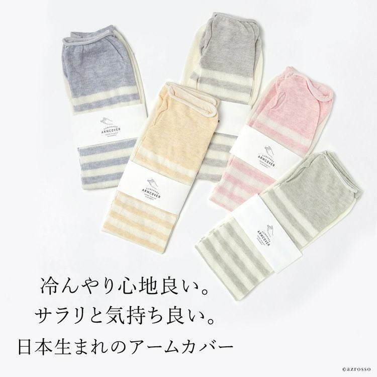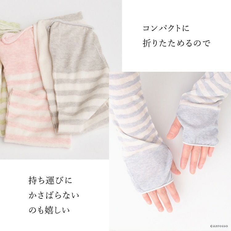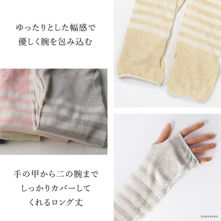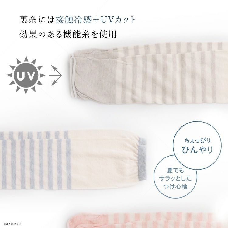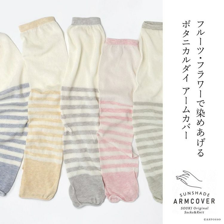 ボタニカルダイ アームカバー uvカット 冷感 ロング アームウォーマー 涼しい レディース 日本製 ブランド オーガニックコットン ボーダー【通常ネコポス配送】