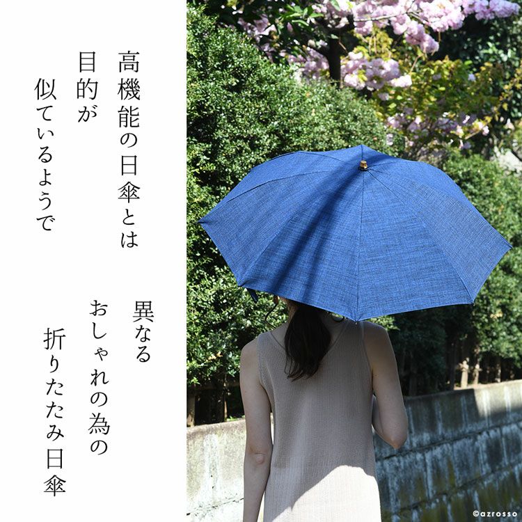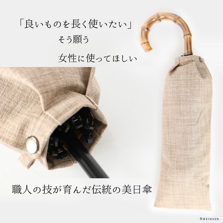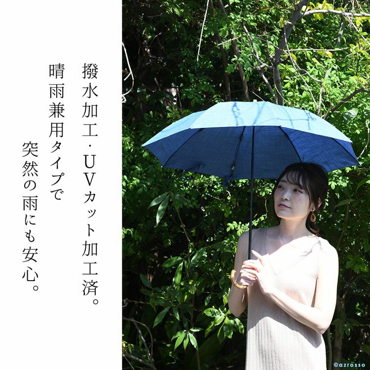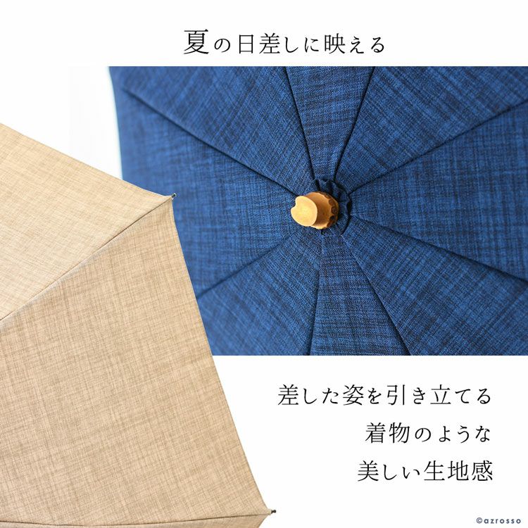 生地はUVカット加工+撥水加工済みで、突然の雨も大丈夫な晴雨兼用タイプ。普段の装いのみならず、お着物(浴衣や和装)にも合わせやすい。どんな場所に持っていってもはずかしくないクオリティと申し分ないセンス。