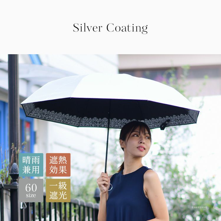 ▼特徴: 一級遮光 晴雨兼用傘 レディース傘 おしゃれ 日傘 雨傘 兼用 熱中症対策 紫外線対策 大判 大きめ 内側 黒 遮光 UV 遮熱 はっ水 軽い 軽量 親骨 60cm 60センチ レース柄 折り畳み おりたたみ 折たたみ