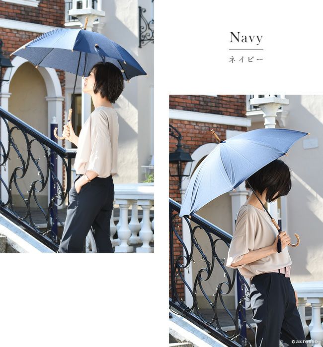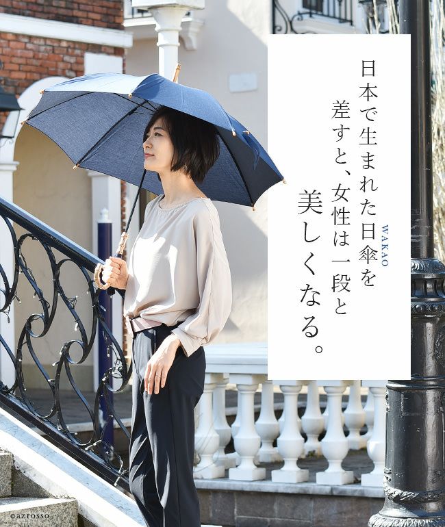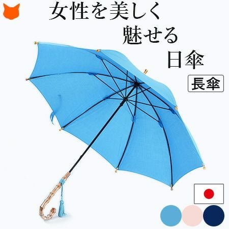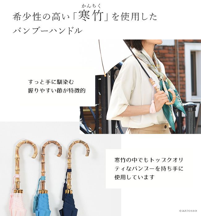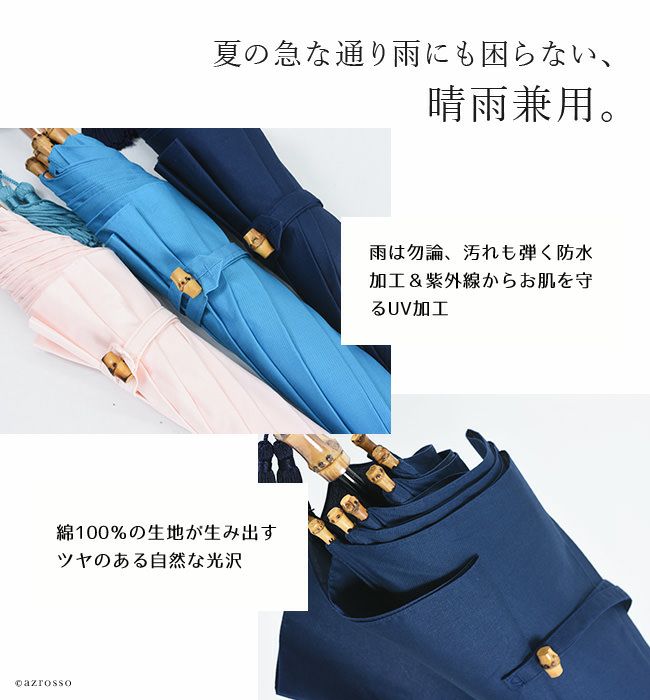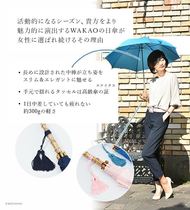 【在庫限り】ワカオ 日傘 長傘 生地 日本製 WAKAO コットン 綿100 バンブーハンドル タッセル 無地 撥水加工
