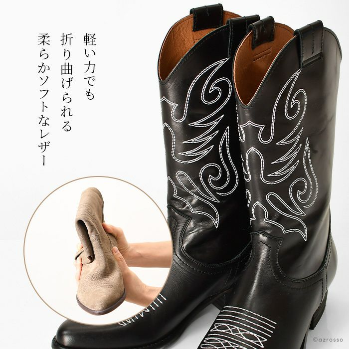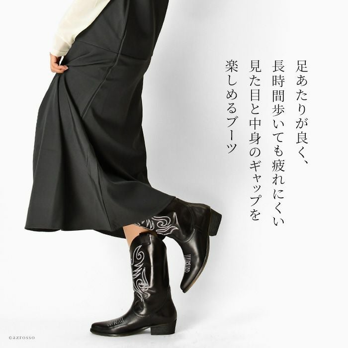 ブーツの中は吸湿性、通気性に優れているファブリックを使用しているので、1日中快適な履き心地が続きます。ウエスタンブーツながら、シックなデザインで、いつものコーデに取り入れるのに最適。スタイリッシュなコーデにオススメです。