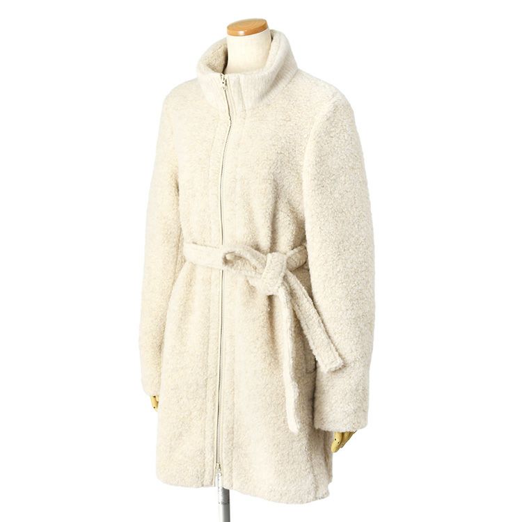 アルパカとバージンウールで紡いだ膝上のイタリア製ステンカラーコート。ファスナータイプでカジュアルにも使える。アイボリーホワイトのもこもこが暖かくてかわいい。人気アウターブランド、リサコンテの新作 イタリア製 アルパカ コート バージンウール レディース 軽い ステンカラーコート ファスナー コート ミドル コート もこもこ 暖かい 冬 ウールコート アイボリー ホワイト 白 ファー 高級 イタリア ブランド リサコンテ 防寒 大きいサイズ 軽量 カジュアル ミドル丈 ベルト付き 膝丈 膝上