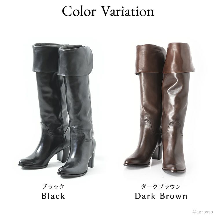 トップクラスのレザーを使ったイタリアのニーハイロングブーツ 22-24.5cmのみ|ヒール7cm 折り返して2way ロングブーツ&ニーハイブーツ イタリア製 ブランド コルソローマ9 CORSO ROMA 9 黒 ブラック ブラウン